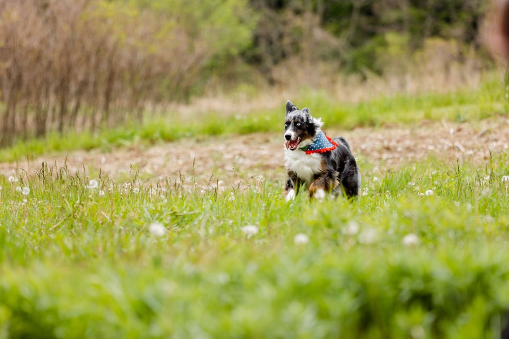 Bailey (Australian Shepherd) is wearing a medium